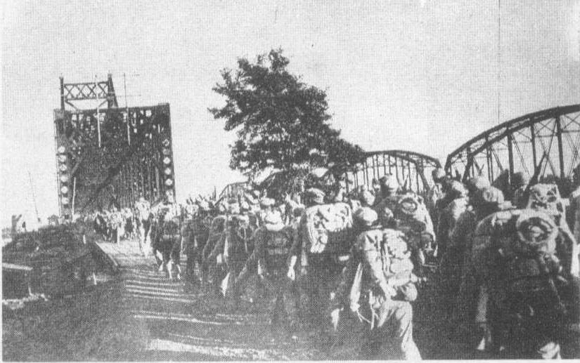 志愿军某部跨过鸭绿江大桥 抗美援朝Kangmei yuanchao中国人民抗击美帝国主义侵略、援助朝鲜人民的伟大自卫战争。1950年6月25日,美国唆使南朝鲜李承晚集团进攻朝鲜民主主义人民共和国, 接着, 又把第七舰队派往中国台湾。9月15日,美国纠集15个国家的军队,打着“联合国军”的旗号在朝鲜仁川登陆。同时,美国政府不顾中国政府的一再警告,把战火引向中国边境,轰炸中国丹东等地。为了援助朝鲜人民的抗美救国战争,保卫刚刚诞生的新中国,中国政府毅然作出“抗美援朝、保家卫国”的决定,组成中国人民志愿军,由司令兼政委彭德怀率领,于10月25日开赴朝鲜前线,与朝鲜人民军并肩作战,抗击美国侵略军。至1951年6月, 中朝人民军队在极为艰苦的条件下,以运动战的形式,连续进行了5次战役,把敌人赶回“三八线”附近,迫使其转入战略防御,并开始接受停战谈判。此后,中朝人民军队与敌进行了两年多的阵地战, 进行了著名的上甘岭战役和金城战役等。经过3年的战争,敌人连遭失败,不得不于1953年7月27日在朝鲜停战协定上签字。至此,中朝人民军队取得抗美战争的伟大胜利。在3年的艰苦作战中, 中朝军队共歼敌109万,其中美军39万人。 抗美援朝1950年6月25日朝鲜战争爆发。6月27日美军进入朝鲜并派军舰侵占中国台湾。10月1日美军越过“三八线”向中朝边境进犯并多次轰炸中国东北。10月18日应朝鲜民主主义人民共和国请求,中共中央作出抗美援朝保家卫国的重大决策。10月19日中国人民志愿军首批4个军及3个炮兵师入朝参战。从10月25日至1951年6月10日志愿军连续进行5次战役,将美国侵略者赶回“三八线”以南,并迫使其接受停战谈判。1953年7月27日朝鲜停战协定在板门店签字,抗美援朝战争结束。从1950年10月25日起至1953年7月27日结束,历时2年9个月。“联合国军”投入战场上的总兵力最高时达69万余人,中朝军队为112万余人,其中志愿军77万余人。志愿军毙伤俘敌71万余人,美军消耗各种作战物资7300余万t,经费830亿美元。志愿军伤亡、失踪36万余人,消耗各种作战物资560余万t,用于战争的经费人民币62亿元。战争中共毙伤敌军109.3万余人,其中美军39.75万余人,击伤击落和缴获敌机12224架,击毁击伤和缴获敌坦克3064辆,击毁击伤和缴获敌军各种炮7695万门,击沉击伤敌舰257艘。 |