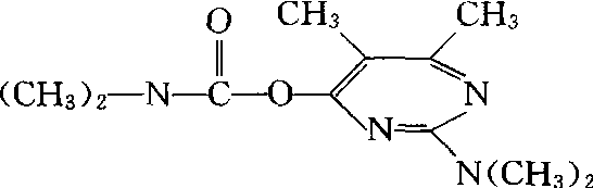 | 释义 | 抗蚜威pirimicarb强选择性氨基甲酸酯杀蚜虫剂。商品名称辟蚜雾,化学结构式: