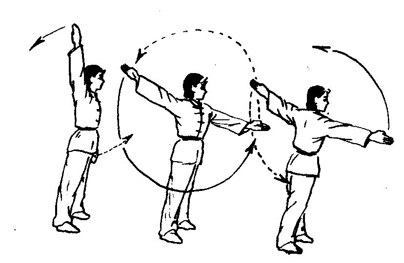 臂功之一。是两臂以肩为轴,做直臂的抡转绕环动作。包括单臂或双臂向前或向后绕环和两臂前后同时的绕环动作。教学重点 强调松肩和松腰, 以腰带臂。