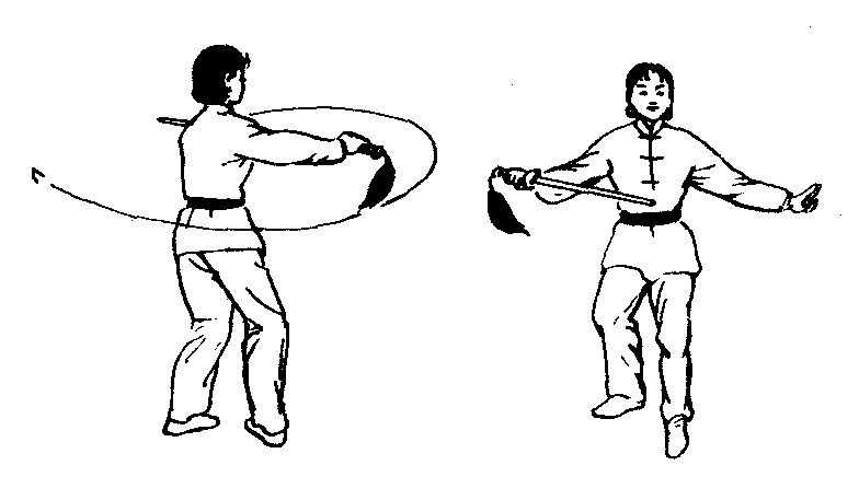 | 释义 | 抹剑剑法之一。是以剑刃中部为力点,由前向左或向右弧形回抽的动作。抹剑在现代剑术套路中出现得不多,太极剑中出现的次数较多,属太极剑十三式之一。动作过程:抹剑可分为:持剑手手心向上,由前向左弧形回抽的左抹剑;手心向下,由前向右弧形回抽的右抹剑和伴随转体的旋转抹剑(图2—4—102)等形式。动作要领:抹剑时总的要求是: