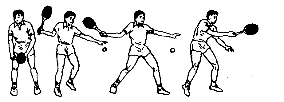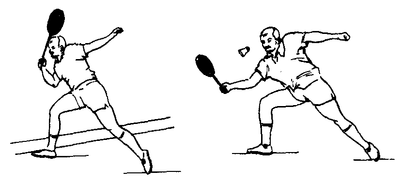 | 释义 | 抽球是将位于身体左、右两侧高度在肩以下,腰以上部位的球平抽过去。它是双打对攻中主要技术之一。抽球分为正手和反手两种。正手抽球时(见图2—3—30)右脚稍向右侧迈出1小步,同时上体稍右倾,右臂向右侧上摆,球拍随之上举,肘关节保持一定角度,右脚跟提起。由肘关节开始前摆发力,前臂稍后摆并带有外旋,手腕从稍外展至后伸,使球拍引至后下方。接着前臂急速往右侧前挥动,从外旋转为内旋,手腕由后伸至伸直闪腕,手指握紧球拍,高速挥拍击球,由后下往右侧平抽过去。击球后,球拍顺势盖过去向左边摆。反后抽球时,右脚向左前跨1步,身体左转,右前臂往身前收,肘部稍上抬,前臂内旋,手腕外展,球拍引向左侧,接着右前臂在往前挥拍的同时外旋,手腕由外展到伸至内收闪腕,手指突然握紧拍柄,拇指前顶,迎球挥拍,击球托的后底部。挥拍的路线是由下稍上至前。击球后,球拍顺势盖过去,使球向前平直飞行。