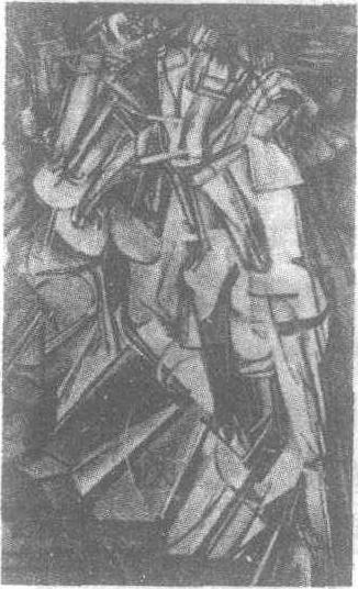 走下楼梯的裸女 杜尚 狭义是指立体主义之后,发生于欧洲继而扩展到全世界的前卫美术运动。其中又有种种倾向。一,当将物象之形渐渐单纯化,最终就成了仅有直线、曲线和圆线,因此原来的形状也就无从知道了。二,从一开始就用直线或曲线的组合来创作作品。三,当见到物象的时候,我们受到强烈的感染或者油然生起某种感情,如喜悦、悲怆等,并将这种内心感受独自表现于作品之中。总之,这些倾向的共同特征是:不留有任何客观形象,完全由色、线、面构成,直接表现美术家的心象。 20世纪的抽象绘画,被认为是由康定斯基在音乐的启迪下所开创的。当然,在他之前,野兽派和立体派已促进了形与色的独立发展,也有一些画家片断式地尝试过抽象的表现。1910年,康定斯基作了一幅抽象的水彩画,从而迈出了具有决定意义的一步。同年,在沃林格发表《抽象与移情》之后,他撰写了《抽象艺术论——论艺术中的精神》,系统阐述了新艺术的方向。他认为,由于点、线、面“内在的必然性”,便产生出了图形的韵律,因此绘画可以像音乐一样,使用形与色作纯粹情感的表现。抽象绘画的系统实验,是1913年在俄国开始的。无论光线主义、构成主义,还是马列维奇以著名的《白底黑方块》为代表的至上主义,可以说都是抽象美术舞台上所开出的花朵。抽象绘画获得扩展的另一地域是荷兰。蒙德里安与他创立的风格派社团,于1917年发展了一种几何风。它与出自野兽派和表现派的康定斯基那种抒情风格不同,而是从立体主义中派生出来的。蒙德里安把自己的抽象风格称为“新造形主义”。在《红、黄、蓝的构图》(见彩色图版)中,用直线和色块描绘出最纯粹的几何图形,并企图画出它内在的生命力,即那种彻底的秩序和比例的美。他以建筑为理想,又影响了当代的建筑,并透过包浩斯体现出来。 |
