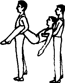 3人1组,2人抬1人,形似拉车,进行走、跑负重练习。做法:3人同向纵队站立,第3人用两手自中间人的腋下环抱其胸(或勾住肩部),前面人在中间人的两腿之间,用手分别自其膝外向内抬起两腿成“一架小车”向前行进。