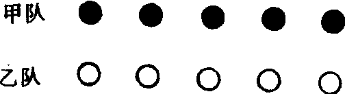 游戏方法 把学生分成人数相等的甲、乙、丙、丁4个队, 各成横排站立。甲、乙两队相对,丙、丁两队相对。教师发令后,甲、丙两队学生将球抛起,用球拍连续拍球,乙、丁两队学生记数。甲、丙队学生失球后,与乙、丁队交换。以拍毽多的为胜, 共取3—5名。 游戏规则 ❶以连续拍毽计数为有效。 ❷毽球落地为失效, 停止计数。 |