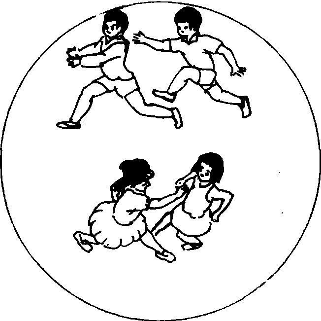 场地 在空地画一个直径8—10米的圆圈。 游戏方法 把学生分成若干组,每组两人。预备时每组两人在圈内,间隔一臂,面对而立。教师发出开始的口令后,双方设法去摸对方肩部。以先摸到对方肩部者为胜。 游戏规则 ❶可以左右躲闪并在圈内跑动。 ❷在跑动中出圈为失败。 ❸触及肩膀以外的部位无效。 |