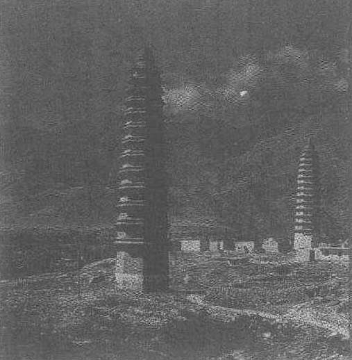 拜寺口双塔拜寺口是贺兰山山口之一,位于银川市西北45公里,在贺兰山县金山乡境内。两座古塔屹立在山口北边台地上。 拜寺口双塔全国重点文物保护单位。位于市西北45公里,贺兰山拜寺口北岗上,为宁夏境内仅存的密檐式砖塔。双塔是古代佛教建筑,始建于西夏后期,西塔早于东塔。元代曾重加修饰彩绘。两塔东西相对,相距近百米。东塔,砖筑八角十三层,外观秀拔,残高39.15米,底层每边长2.93米,无基座,底层塔身素面,正南辟有券拱门,可通塔室。除第一层较高外,第2层以上檐与檐之间的高度逐层加密,每层各面影塑2个彩绘兽面,兽面间影塑日、月、云、火焰宝珠图案,第13层之上,置上仰莲瓣形刹座,承托相轮。塔室圆形,系厚壁空心式木板楼层结构,原有木梯可供攀登。西塔也是13层,较东塔粗壮,外形呈抛物线状,残高41米,底层边长3.1米。自二层以上,塔身每面正中有一浅龛,龛内塑佛像一尊。龛的左右上角塔身转折处,又各雕佛像一尊。西塔刹座穹室内发现梵文题记11条,西夏文题记6条,以及彩胶漆绢佛画、元代中统交钞、银币、喜吉金刚像等。1986年对双塔进行了加固修复。两塔间原有佛寺,已圮,遗址上发现与西夏陵园相似的绿色琉璃瓦,寺始建年代当与此相近。 |