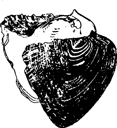 图133 三角帆蚌 三角帆蚌Hyriopsis cumingii无脊椎动物,软体动物门,双壳纲(瓣鳃纲)。我国特有的重要淡水育珠蚌之一,生成的珍珠质量上等。我国用它培育珍珠已有1000多年的历史。贝壳大而扁平,壳长19厘米,高9厘米,壳面黑色或黄褐色,厚而坚实,后背缘向上伸出1块帆状后翼,使蚌形呈三角状,因而得名。贝壳可用作镶嵌等工艺品,也可作中药珍珠母;肉可食用,肉和壳粉适作家畜、家禽的饲料。人工养殖多选用4~8龄健壮成蚌吊养在池塘内,提供流水环境,亲蚌易于排精、排卵和受精。 三角帆蚌Hyriopsis cumingii (Lea),又称三角蚌、扯旗蚌、水壳、劈蚌、江贝、翼蚌、石蚌等。瓣鳃纲,蚌科。壳大而扁平,壳质坚厚,外形略呈不等边三角形。背缘向上扩展,形成三角形帆状后翼,故名。壳面呈黑色、深褐色。生长纹明显。壳内面珍珠光泽绚丽。本种为中国特有种,分布于华北和华东等地区,喜栖息在流急、水清、底质较硬的泥沙或泥底的大、中、小型湖泊及河流里。杂食性。雌雄异体,繁殖期4~8月。产珠质量较好,手术操作方便,成活率高,是人工培育珍珠的优良品种之一。