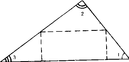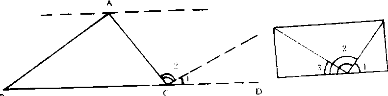 三角形三个内角和等于180°。如图,△ABC中,∠A + ∠B + ∠C =180°。证明方法如下:已知: △ABC (如图)。求证: ∠A+∠B+∠BCA=180°。证明: 延长BC到D。过C点作BA的平行线CE。∠B=∠1 (两直线平行, 同位角相等),∠A=∠2 (两直线平行, 则内错角相等),∵∠1+∠2+∠BCA=180° (平角),∴∠A+∠B+∠BCA=180°。三角形内角和等于180°是三角形的重要性质。在小学数学教学中一般采用直接度量或实验的方法。可先让学生用量角器量一量三角形的三内角各是多少度,再算一算三个内角的和是多少度,通过度量使学生得出 “三角形的内角和等于180°”这一结论。还可以用实验的方法。如图,把三角形的三个内角按虚线折过去或剪下来对在一起,使学生直观地看出正好拼成一个平角,从而得出上述性质。根据三角形的这一性质, 只要知道三角形的任意两个内角的度数,就可以求出第三个角的度数。例如,已知一个三角形的两个内角分别是40°和65°,求另一个内角的度数。设另一个内角为X°, 则∵X°+40°+65°=180°,∴X°=180°-40°-65°,∴X°=75°。根据等腰三角形两底角相等的性质, 若已知它的一个内角的度数, 则可求出另外两个内角的度数。