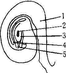 1. 珠柄 2. 胚囊3. 珠心 4. 外珠被 5.内珠被