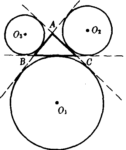 和三角形一边及另外两边的延长线都相切的圆.旁切圆的圆心叫做三角形的旁心.一个三角形有三个旁切圆,如图.