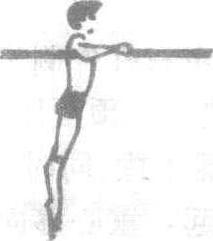 动作要领 杠端或杠中站立,屈膝,上举两臂跳起,当臂穿过杠水平面时,屈臂平举肩带用力压杠,以前臂和大臂接触杠面, 成身体自然下垂姿势。 保护与帮助 保护者站在练习者背后, 双手扶腰帮助跳起挂杠。 教学重点 挂臂时肩带肌紧张,用力压杠,肩轴高于器械轴。 |