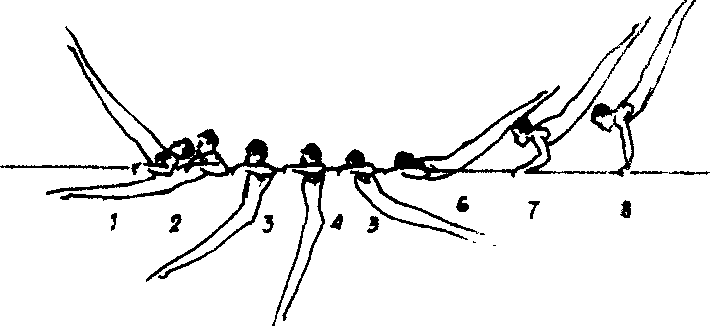 | 释义 | 挂臂撑后摆上挂臂撑,借助向后摆腿及制动,两臂压杠,使身体向后上腾起成支撑。动作要领:由屈体挂臂撑开始,做“弧形放浪”(技术要领见“挂臂撑摆动”)。当身体下摆过杠水平部位后,稍含胸,微屈髋,腰背肌充分拉长。当身体摆过杠下垂直部位后,迅速地向后上方用力甩腿,紧腰,加速后摆。当身体向后上方摆过杠水平后,两臂用力压杠,肩稍前移,身体继续向后上摆,两臂伸直成支撑。保护与帮助:保护者站在杠侧,当练习者后摆时,托其腹部,助其上成支撑。教学重点:反复做挂臂摆动后摆腿及制动与两臂压杠的配合练习,然后在助力下做完整动作练习。