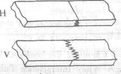 图1 指接齿型 指齿形状及特点 ❶齿型:按齿长可分为N型齿和微型齿两种。N型齿,齿长大于20毫米;微型齿,齿长小于或等于15毫米(图1)。按加工方向可分为水平型(H型)和垂直型(V型)两种(图2)。水平型(H型),平行于木纹方向,即沿被加工材宽度方向加工的指齿;垂直型(V型),垂直于木纹方向,即沿被加工材厚度方向加工的指齿。 ❷特点:在同样条件下,N型齿的强度高于微型齿的强度;在N型齿中,V型强度略高于H型5~8%,但随着齿长减少,两者性能接近。H型加工所用刀具数目较V型少,而且刀较薄,动力消耗小。在加工时,H型所用工卡具及安装要求比V型严格得多。否则,在厚度方向上易产生尺寸与形状误差。尤其在加工针叶树材时容易产生劈裂,造成废品。V型加工较H型容易、精度高、合格率品高、木材浪费小、生产率高。