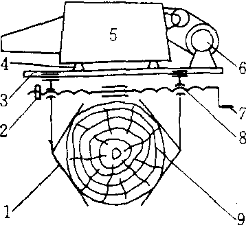 振动采种机示意图 1.夹持臂 2.锁紧螺母 3.底板 4.隔振垫 5.发动机 6.振动箱 7.手柄 8.双头丝杠 9.树干 |