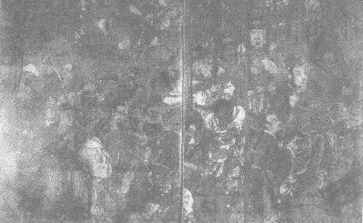 | 释义 | 捉蝗农夫图壁画明。纵146厘米,横240厘米。山西省新绛县稷益庙正殿东壁下部壁画。这是表现农民生活的一个生动场面。农夫或扛锄,或持䦆,或赤手,纷纷涌向一处。画面中央几位农夫在捆缚一只蝗虫精。蝗虫精长二尺许,绿身,褐翅,尖爪,目圆睁,口大张而露齿,虽被擒仍在做最后挣扎。作者以现实生活为依据,选取农业中经常碰到的蝗虫灾害作为绘画题材,但又未照搬生活直接表现农夫与群蝗的斗争,而是大胆地做了艺术夸张,将这种捉小小蝗虫的场面,通过捉住一个臆造的蝗虫精加以浓缩,充分显示出作者高度的想像力和概括力。作者对农夫的形象表现逼真,那风吹日晒而形成的古铜色肌肤、深深的皱纹、粗壮的身材、愤恨的表情,都是作者深入观察生活、技艺高超的体现。