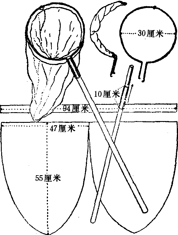 | 释义 | 捕网buwang适于迎头捕捉或从旁掠取空中或地面上正在快速飞行昆虫的网。一般的捕网是由网圈、网柄和网身3部分组成。网圈用粗铅丝弯成直径30厘米的圆圈,铅丝的两端折成直角后,再弯成小钩固定在木质网柄的孔内。网柄长约1米左右,直径约1.5~2厘米,距顶端10厘米处,在两侧各挖1条适于放入铅丝的浅沟,沟的末端钻孔,孔的深度要适于网圈末端小钩插入。最后用细铅丝将柄端的粗铅丝牢牢缠紧,或用特制的铁箍套住,更为方便而牢固。如将网圈的粗铅丝正中央剪断,各弯成1个小圈互相套起,即可制成1个能够活动对折的网圈,携带时较为方便。网身用白色或淡绿色的细珠罗纱、绢纱、或蚊帐布均可。需按一定的形状、尺寸剪成缝好,上端另加缝1块长94厘米的窄条白布,用来缝包在网圈的外面,保持网身的深度比网口直径长约1倍,即可制成既通风又适用的轻便捕网。捕网又称气网。