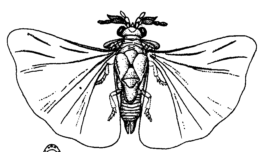 (a) 雄成虫(仿E.O.Essig) (b)雌成虫(仿E.O. Essig)(c) 寄主(仿W.Ulrich)