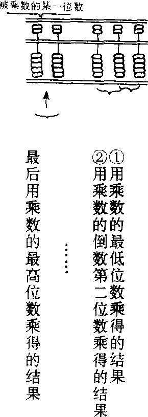 | 释义 | 掉尾乘Diaoweicheng多位数相乘时,先从被乘数的末位数字与乘数的末位数字乘起, 一直乘到乘数的最高位数字时才去掉本位数。用同样的方法逐位运算, 直到把被乘数逐位乘完为止, 其方法类似于笔算。运算时,乘数是第几位、则乘积的个位数就加在被乘数右边的第几档上。因为它是从尾数开始起乘,所以也叫尾乘法。掉尾乘的优点是运算顺序与笔算乘法完全一致、好学;但缺点也较明显,因其从右向左拨珠,已拨的珠既被手遮蔽不易看清,又易被手指或衣袖碰乱, 乘得结果需数档定位, 这些因素都妨碍计算速度的提高。另外, 由于需使用顶珠及悬珠, 对初学者也带来一些困难。 |