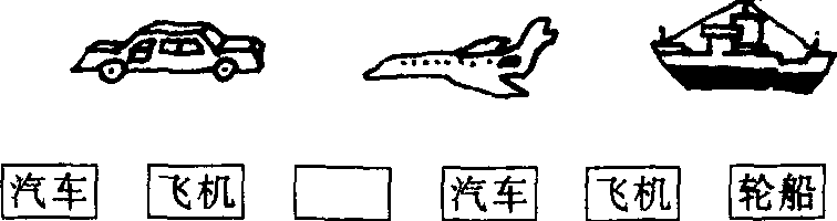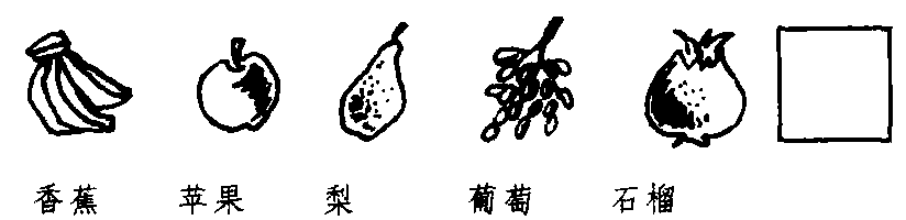 把一组图形有规律地排列起来,在其中或横排最后留一个空格,再提供几个供选择的图形,让幼儿选择一图形填入上面的一组,要求符合图形排列的规律。如选择填图: