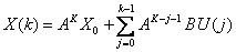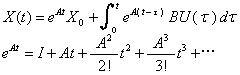 ❷拉氏变换法; ❸矩阵对角化方法等。时变系统解的形式与上述解相同,但其状态转移矩阵的求法较繁。 上述各式皆属于连续时间情形,即各变量为时间的连续函数。在生物、生态、经济问题中多用离散时间形式描述。此时状态方程取差分方程形式: X(k+1)=AX(k)+BU(k), X(0)=X0,k=0,1,2,… Y(k)=CX(k)+DU(k) 对于时不变情形,其解为: