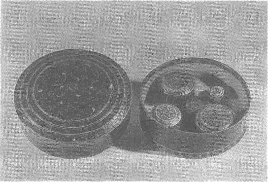 | 释义 | 描漆单层五子奁西汉。高15厘米,口径32.3厘米。1972年湖南省长沙市马王堆1号汉墓出土。湖南省博物馆藏。奁,盛梳妆品用具。此奁木胎,圆形,天覆地式。表面及盖里、底部中心髹黑褐色漆地,盖上用红色、灰绿色漆绘勾云纹和几何纹。盒内髹朱漆,并盛铜镜、环首刀、印章、笄、梳等用具和五只大小不等的圆形小奁,其中三件夹纻胎,两件木胎,奁表分别饰以针划、漆绘或油绘的云气纹、几何纹、圆点纹、草叶纹、波状纹和花瓣纹等纹饰。出土时,这些小盒内分别盛以化妆品、花椒、香草等。此五子奁造型精巧别致,盒中套盒,颇具匠心。