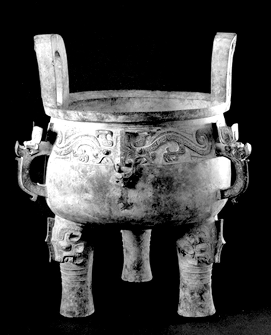 | 释义 | 三銴耳饕餮纹鼎sanzhe’er taotiewen ding西周早期铜食器。1979年淳化县石桥公社(今石桥乡)史家原村西周墓出土。通高122厘米,口径83厘米,腹深54厘米,重226公斤,是目前已知西周铜器中最大最重的圆鼎。鼎平沿外折,方唇,与足相应的腹部铸有三个兽首卷舌銴耳,兽首促鼻,盘角高耸,并饰卷曲夔龙纹,銴耳下有勾珥。鼎耳外侧曲体上缘饰夔龙,龙体满布鳞纹,地填云雷纹。沿下饰两两相对三组夔龙,夔龙暴目张口,竖角奋足,鳞身卷尾,云雷为地。两龙中隔短扉,并以扉为鼻呈一饕餮面。饕餮口下饰牛首,饕餮咧嘴奋爪作啖牛之势。足根亦饰带鼻棱的饕餮纹。此鼎体大超重,搬动非易,故附三銴耳,以便众人用力。鼎造型宏伟,是青铜重器瑰宝。现藏淳化县文化馆。