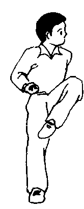 步型之一。为身体直立,支撑腿挺膝伸直, 另一腿绷脚尖屈膝提起的姿势。教学重点 强调提膝腿屈膝叠紧并尽量高提。