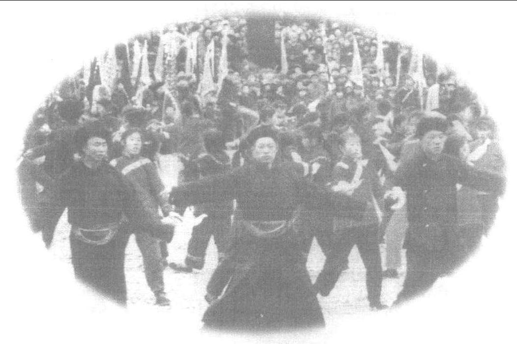 舞蹈由一鼓一锣伴奏。大鼓置于摆手坪的中央,男女老幼围成圈,在梯玛的率领下,摆动双臂,合着锣鼓点走出各种队形图案。动作的主要特点是“摆”,双手在身体的前后、左右、上下摆动,身体也随之而摆,故称之“摆手舞”。风格可以概括为六个字: “顺拐、屈膝、下沉”。队形图案有: “团圆摆”、“一口井”、“分兵把守”、“排甲出征”、“绕山涉水”等。舞蹈气质豪迈粗犷,舞姿淳厚古朴。流传在湖南土家族的摆手舞有大摆手、小摆手之分。大摆手是祭祀先祖“八部大王”,规模宏大,舞者成千,观众过万,最盛时观者达十余万。舞蹈内容包括: (1) 排甲起驾。(2) 闯驾进堂。(3)纪念八部。(4)兄妹成亲。(5)迁徙定居。(6)建设家园。(7)自卫抗敌。(8)送驾扫堂。小摆手是祭祀 “彭公爵主” 或本姓氏的祖先,以村寨为单位进行小规模的活动,舞蹈主要表现家事生活。 摆手舞的历史久远,清代县志中就有多处有关的记载,而舞蹈的反映的内容更是使学者们推溯玻远古时代。该舞展现了土家族的历史和生活,是土家族的一部壮丽的舞蹈史诗。 摆手舞湖南西部土家族群众性的大型传统舞蹈。相传源于唐以前。一般在夏历正月初三至十五日之间举行。除作为一种群众性文化娱乐活动外, 还有祭祀祖先, 祈求丰年的意义。跳舞时由一人在中间敲锣打鼓,其他人由一人领头,围圈跳舞,转一圈或数圈后换一个动作,连续构成薅田、插秧、扯草等情节。舞蹈形式有单摆、双摆、回旋摆等。舞姿优美,富有生活气息。除表演农事劳动外, 还能表现爬山涉水、日常生活和战斗场面。按规模大小,有大摆手与小摆手之分。龙山县马蹄寨的大摆手, 结合敬“八部大王”的活动。分成闯驾进堂、纪念八部、兄妹成亲、迁徙定居、自卫抗敌、送驾扫堂等内容。要连办三天三夜。湖北、四川交界地区的土家族也赶来参加, 最盛时聚集达五、六万人之多。 摆手舞中国土家族民间舞蹈。有2000多年历史。流传于湖南、湖北、四川等省土家族聚居区。具有祭祀性、风俗性、自娱性,逢年过节,在锣、鼓等打击乐伴奏下,由1人领舞,男女老少围成多层圆圈摆手欢舞。参加者一般有1000~6000人,有时多达1万人以上。20世纪50年代后,注入人民新的生活内容,演变发展为广场群众性文娱活动。 |