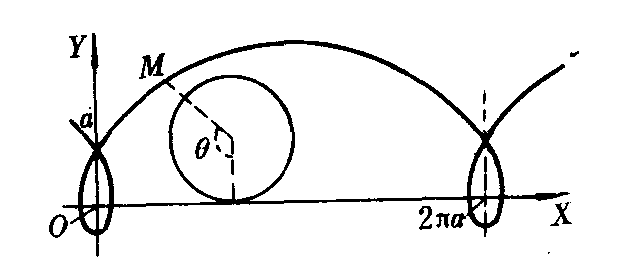 图1 若动圆半径为a,定直线为X轴,则螺线的参数方程是 ![]()