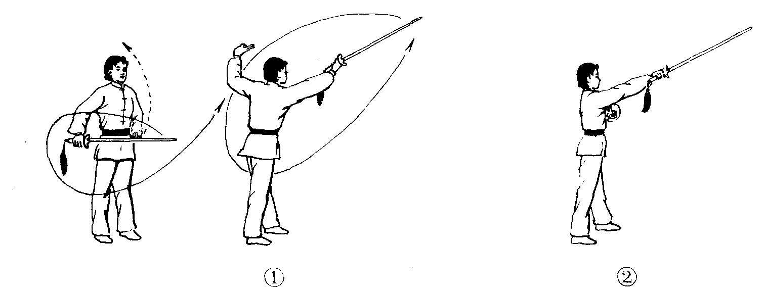 剑法之一。是以剑的下刃前段为力点,由下向前上方摆出的动作。在武术古籍中,撩剑被列为太极剑十三式之一。现代剑术套路中,撩剑也是出现次数最多的剑法。《武术竞赛规则》规定,在自选剑术套路中,撩剑是必须安排的剑法。动作过程:撩剑可分为:撩剑之前臂外旋,手心朝上,擦身向前上撩出的飞撩剑(图2—4—100—❶);撩剑之前臂内旋,虎口向前下,擦身弧形向前上方撩出的反撩剑(图2—4—100—❷)。动作要领:各种撩剑总的要求是:❶以腰带臂,以臂带剑,挑腕上撩。❷剑撩出后,手腕上挑,手臂与剑成一条直线,力达剑下刃前段。❸剑刃在上撩时要直立。❹采用螺把握剑。攻防含义:撩剑是进攻型剑法,常用来攻击对方的腕、肘、肩、头等部位。其特点是由下向上有一定的隐蔽性。注意事项:❶要注意撩剑与拦剑(见拦剑)的区别。❷剑在上撩时要擦身沿立圆路线行进。❸老年人练习此剑法时,要防止用力过大、过猛,造成脱把和腕、肘部受伤;撩剑的幅度也可稍小些。