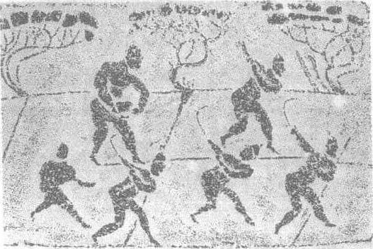 | 释义 | 播种画像砖东汉。长24.2厘米,宽38.6厘米。1953年四川省德阳县柏隆乡出土。四川省博物馆藏。在叶茂如盖的树前田间,六个农夫正在辛勤的劳动。前边四人双手执镰向右高扬,正欲落下刈草,后边两人弯腰作播种状。此画像构图简洁,人物动作整齐,予人以韵律感。创作者在表现自然与人的关系时,不是突出劳动者的艰辛,而是通过动作节奏的韵律,传达出劳动者与自然内在的相互关系。