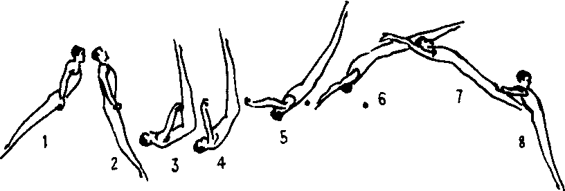 | 释义 | 支撑后倒弧形下低杠支撑,借助向前摆腿和后倒上体,使身体向前上沿弧线挺身跳下的动作。动作要领:支撑,直臂撑杠,梗颈,上体后倒,同时两腿前摆(稍屈髋)向前上方举起。当肩部倒至杠下垂直部位时,两腿向前上方沿弧线迅速地伸出,送髋,两臂同时伸直用力向后引杠,拉开肩角后放手,接着两腿下压制动,身体挺直沿弧线落下。保护与帮助:保护者站在杠前侧方,一手从杠下翻握他的手腕,另一手托他的腰背。教学重点:低杠站立悬垂开始,做两脚跳起弧形下动作,体会摆腿、倒体、沿弧形线挺身落下的配合技术,然后,在助力下做完整动作。