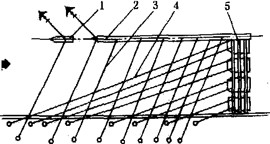 1.防护漂头; 2.纵漂; 3.正向腰绳; 4.横向绠绳;