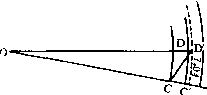 又称余弦丈量法,是径赛场地的丈量方法之一。所谓放射式丈量法,是由基准点放射出若干条直线,丈量某一组位置的方法。它是根据平面三角中的“余弦定理”计算的。其公式为: a2= b2+c2-2bccosA。如400米跑第2分道起跑线前伸数7.04米的放射线长。三角形COD中,已知O为半圆之圆心,OC为半径(36米),OD为36米+1.22米=37.22米。C′D′虚线弧为400米第2分道的起点线前伸数(7.04米),CD线是所要计算的7.04米的放射线长。放射线计算步骤:❶求出道米角(每道弯道弧长1米所对圆心角,用各分道的圆周长去除360°)。