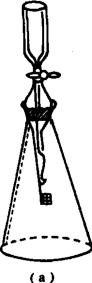 燃烧法 14C,3H和35S样品,在氧气中完全燃烧,产生14CO23H2O和35SO2,用适当溶剂吸收后,用液体闪烁仪测量吸收液的放射性。燃烧产生的14CO2用碱性试剂,35SO2用酸性试剂,3H2O用乙醇回收。可采用❶燃烧瓶(见图)。将少量粉样包于无灰纸内,置于镍铬丝篮中,充入氧气,盖紧。点火,使样品燃烧,注入吸收闪烁液,低温下吸收完全后,取吸收液测量其放射性。