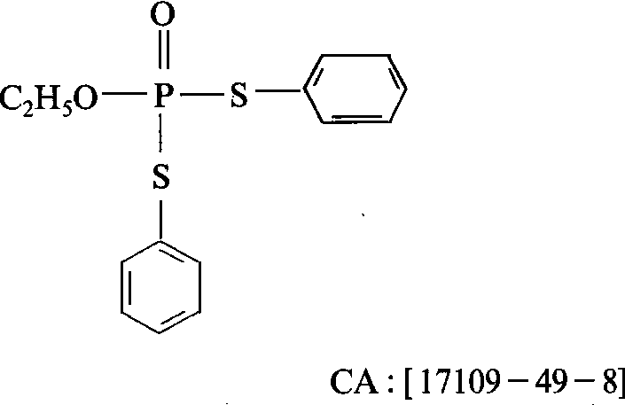 性能 纯品为无色粘稠油状液体;工业品黄色至浅棕色,带有硫醇臭味。沸点为154℃ /1.333帕。在70~ 100℃时,蒸气压9.999×10-4~9.999×10-2帕。难溶于水,易溶于丙酮、二甲苯、甲醇、乙醚、氯仿等有机溶剂。化学性质稳定,25℃时,在中性水中半衰期可达1135小时。但在碱性水中(pH9),其半衰期只有49小时。在紫外光下易分解。中等毒性,雄大鼠急性经口LD50340毫克/千克,雌大鼠急性经口LD50 150毫克/千克,小鼠急性经口LD50 218毫克/千克; 大鼠急性经皮LD50>1230毫克/千克。对人皮肤和眼睛无刺激作用,在试验剂量内对动物无致畸、致突变和致癌作用。对鱼类及其他水生生物毒性较高,鱼类96小时LC50 0.43~2.5毫克/千克。对鸟和蜜蜂低毒。对稻瘟病菌的几丁质合成和脂质代谢有抑制作用,从而影响病菌的细胞壁形成,破坏细胞结构。对稻瘟病有良好的预防和治疗作用。对水稻其他病害,如纹枯病、胡麻叶斑病、小球菌核病、穗枯病以及谷瘟病、玉米大小斑病、麦类赤霉病等亦可防治。并对稻虱、叶蝉和一些鳞翅目害虫有杀虫活性。 应用 喷雾或浸种。40%克瘟散乳油对水800~ 1000倍,喷雾防治稻瘟病,其效果优于稻瘟净和异稻瘟净。对水500~ 800倍防治玉米大小斑病等。对水1000倍液浸稻种1小时,能有效地防治苗瘟病。与敌稗前后施药,须相隔10天以上。 敌瘟磷edifenphos又称克瘟散。有机磷杀菌剂。化学名称:O-乙基-S-S-二苯基二硫代磷酸酯。化学结构式如下。原药为黄褐色液体、具硫醇臭味,难溶于水,溶于甲醇、二甲苯、氯仿、丙酮、乙醚等。在正常贮存条件下,两年以上不变质。pH7时半衰期为1 135 h,碱性条件下或紫外光下易分解。1968年由德国拜耳公司推广。主要用于水稻,防治稻瘟病、亦可用于胡麻斑病等水稻叶斑病及纹枯病、小粒菌核病,并兼治叶蝉。叶面喷洒以阻止孢子发芽、及菌丝的蔓延,新分生孢子形成,具保护和治疗作用。对大鼠急性口服致死中量为100~300 mg/kg,急性经皮LD50>1 230 mg/kg,慢性毒性试验,以含药2 mg/kg饲料饲喂小鼠2年,未见不良影响,对鱼耐药中量为0.43~25 mg/kg(96 h),安全间隔期21天(日本)、稻米允许残留量为0.1 mg/kg(日本)。