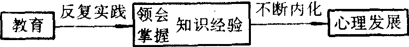 由图可见,从教育到领会、掌握知识经验的过程,是从不知到知、从不能到能的渐进性的量变质变过程:从领会到心理发展之间则是一个比较明显的、比较稳定的质变过程。如智力的发展尽管离不开知识经验,但更重要的是发展观察力、记忆力、思维力和想象力。教育的目的,不仅是使学生领会和掌握知识经验,更重要的是发展心理。只有在心理上引起变化,才能有从教育到心理发展的质变过程。教育者的责任就是要依据心理发展的规律,组织适合学生的教育内容,在学生已有的心理水平上引起新的需要,在用知识武装他们的头脑的同时,引导他们有的放矢地练习和实践,使知识经验不断地内化,使心理得到最大限度的发展。 |