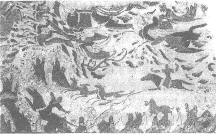 敦煌壁画·狩猎图 敦煌莫高窟壁画敦煌莫高窟,位于中国甘肃省敦煌县城东南25公里的鸣沙山与三危山之间的断崖上,开凿于苻秦建元二年(公元336年),一说开凿于西晋永和九年(353年),历经北凉、北魏、西魏、北周、隋、唐、五代、宋、西夏、元等朝代,一千多年间凿窟建寺活动从未间断。现存洞窟492个。敦煌自张骞通西域始,就成为东西方交流的枢纽。汉武帝时在此设郡,行使管辖权。东西方可以自由交往。成为印度健陀罗文化、希腊文化和中原文化三大文化的会合地。因此,敦煌石窟不仅是中国艺术宝库,也是世界艺术的宝库。敦煌石窟是敦煌郡境内诸窟的总称,包括莫高窟、西千佛洞、安西榆林窟、东千佛洞,及肃北蒙古族自治县内的五个庙石窟等。其中以莫高窟规模最大,建窟最早,内容最丰富,其余诸窟,均系莫高窟的分支。 |