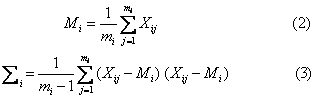 图1 监督分类法流程图 最大似然法是常用的监督分类法。用这种方法对数字图像进行分类处理时,首先由人确定待分的类别数C,指出各类别的训练场地的位置及出现的概率Pi(i=1,2,……C),然后由计算机根据训练场地内已知像元的光谱值 Xj=(x1,x2……xn)T (1) 按下式统计出各训练场地内所有已知像元的光谱均值方阵Mi及均方差阵∑i