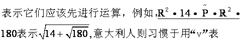 示其后的各项应先进行运算,例如帕乔利(1494)用R