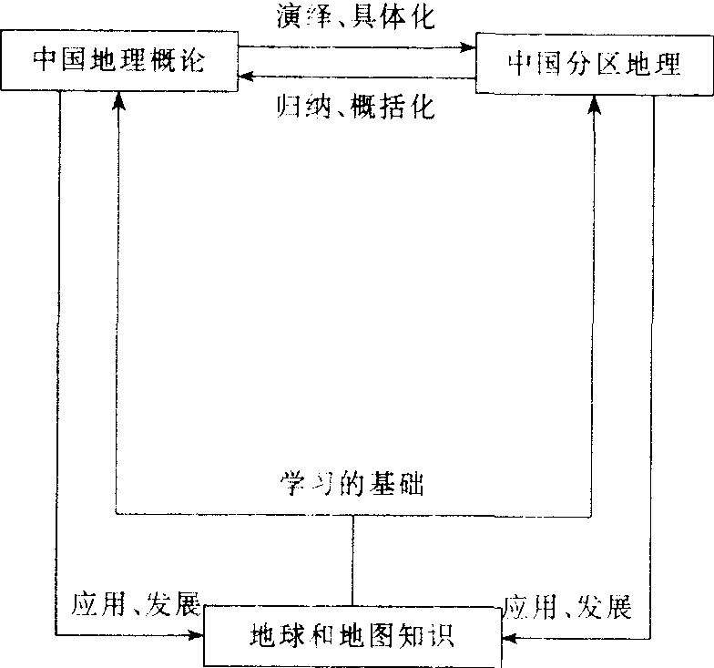 《中国地理》 教材结构模式图 ❸分析教材的外部联系: 分析教材的外部联系是指教师为实现地理教学目的,分析在教学中必须补充的、地理教科书以外知识内容的过程。由于我国地域广阔,各地区中学地理教学水平差异很大,一部或几部教科书是很难适应各种类型学校、不同水平地理教学的需要;同时,教材要适应科学技术、教育理论的发展,也必须不断更新内容。所有这些都要求教师对教材内容进行适当的补充。而对教材外部联系的分析,正是确定补充材料范围和选择具体知识内容的依据。进行教材外部联系分析的工作,主要包括: 确定教材主要外部联系的对象和范围; 明确教材与主要外部联系间的关系: 根据上述分析的结果 (联系的对象、范围与相互间的关系) 搜集和整理有关资料,以备局部教材分析时使用。 |
