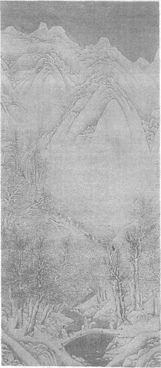 | 释义 | 文伯仁雪景山水图轴明。文伯仁(见《文伯仁溪山仙馆图轴》条目)绘。绢本设色。纵146厘米,横64.7厘米。北京故宫博物院藏。此图绘山中大雪初晴后的景色。山势高远,峰峦层叠,峭拔突兀。山麓间林木苍密,树木劲硬,气势宏伟。近景,一条河水蜿蜒曲折从山间流过,河上一桥飞架。桥上绘有赶路的行旅,有的骑马,有的策杖徐行,人物闲幽,似正赶往山巅,欣赏山中雪景,表现出文人士大夫悠闲的生活。半山腰上,一队行旅正趁雪晴之际,抓紧转运货物,极富生活气息。在林木深处还隐露一城关。此图环境幽美,银装素裹,分外妖娆。山峦坡石、树干板桥留白,天空染灰,以示积雪之厚,寒气逼人。构图巧妙,疏密适宜。设色清爽,笔法挺拔细劲。署款:“嘉靖庚申秋九月望五峰山人文伯仁写。”下钤:<伯仁>、<五峰山人>二印。