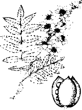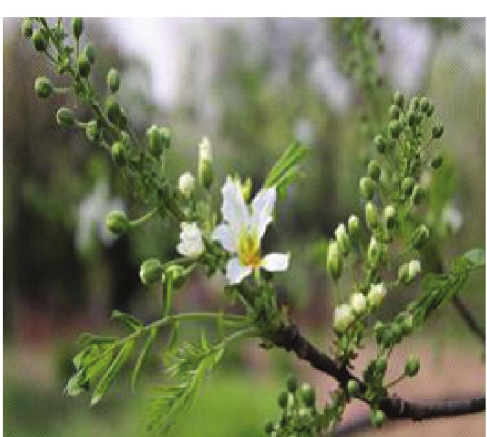 文冠果 文冠果树种。学名 Xanthoceras sorbifoliaBunge,一作文官果,亦称“崖木瓜”“木瓜”。无患子科。落叶乔木。高达8米。树皮灰褐色。奇数羽状复叶,小叶9~19枚,膜质狭 椭 圆 形 至 披 针形,边缘有尖锐锯齿。春季花先叶开放,杂性株,花瓣5片,白色,圆锥花序。蒴果绿色,具厚壁,裂开为三瓣,根深,抗旱力较强。产于我国华北、陕西、甘肃、辽宁、内蒙古等地,天水有分布。种子可食,亦可榨油,含油高达58%,供食用或制肥皂,花可观赏,又是良好蜜源;木材坚硬,可制家具和农具。