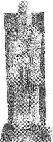 | 释义 | 文吏俑北朝时期。陶胎。高62厘米。深灰色胎、胎质细密。身材修长,秀骨清相。戴冠。冠顶呈方形、上边略前伸、两侧拖于耳下。宽袍博袖,袍内穿护胸甲,涂砖红色,由两根穿带过肩连接。袖宽至膝下,塑出波动状花边线纹。下着长裤、裤管宽松若袜及脚背。双履前上翘。双手于胸按剑而立,长剑笔直及地。头微前倾、双眼俯视、鼻直、鼻翼宽、平唇、嘴角微微翘起,面部线条柔和、质感细腻、含有安然睿智的微笑。神态亲切、于温文尔雅中昂藏俊武之气。今藏旅顺博物馆。