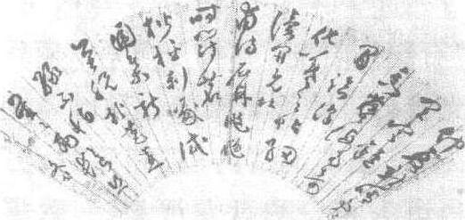 | 释义 | 文彭草书七言律诗扇面明。泥金纸本。纵16.9厘米,横49.4厘米。四川省博物馆藏。文彭(见《文彭草书闲居即事诗》条目)书。此七言律诗:“仲夏新晴事事宜,定垆香尘海南奇。闲临淳化羲之帖,细读开元杜甫诗。石井飕飗时茗,松柽剥啄试围棋。新篁脱粉芭蕉绿,不怕星星两鬓丝。”款署“文彭”。草书用笔奔放洒脱,运笔恣纵,如云翻雷奔,字里行间洋溢着潇洒豪迈的气概。探其书法风格,仍可见其父的影响,翻折运笔以侧锋取势;笔墨之中又效法怀素、孙过庭的飞动和萧散,以及黄山谷的纵横奇崛。从其笔法看,当为文彭中期的作品。