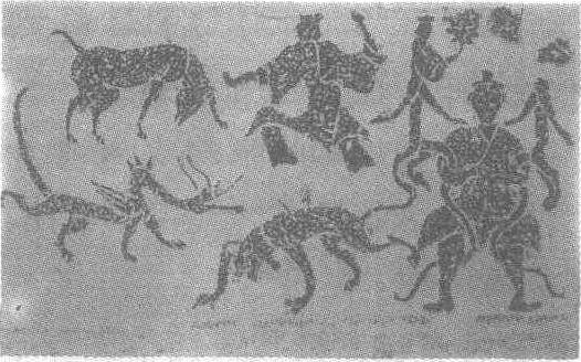 | 释义 | 斗牛龙虎相戏画像石西汉。长84厘米,宽125厘米。河南省唐河县针织厂出土。河南省南阳汉画馆藏。浅浮雕减地法刻成。画面图像分三组。斗牛图在右上部,一力士弓步推掌、灵活地躲闪着气势汹汹地冲来的斗牛;龙虎相戏图在右下方,翼龙屈颈扬尾,伸爪戏虎,虎前肢撑地,左后腿抬起,低头作角觝状。巨人图在左边,为叉足稳力,怀抱两个人首蛇身(伏羲女祸)的神人形象。此画像虚实结合,浪漫而富情趣,有较高的欣赏价值。