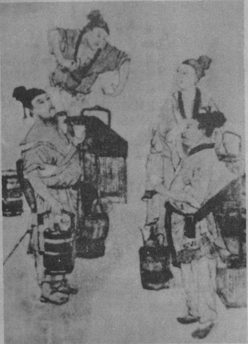 斗茶图 宋代斗茶以饼茶为主, 有一定评比要求。品评前先将饼茶碾末, 用少量沸水调粘, 再注入沸水搅匀,然后在特制的茶碗中鉴色辨味。蔡襄《茶录》中对斗茶的评比有详细记述, 除了评比色、香、味外, 还要评比茶汤着盏的水痕, 以无水痕者为绝佳。斗试时以先有水痕者为负, 耐久者为胜。所以在评比胜负时称作相去一水或两水。斗茶对制茶工艺的精益求精, 有促进作用。 斗茶又作“斗茗”。烹茶互品,以比赛茶的好坏。江休复《江邻几杂志》:“苏木翁尝与蔡君谟斗茶。蔡茶精,用惠山泉;苏茶劣,改用竹沥水煎,遂能取胜。” 斗茶tea game中国古代评比茶叶的一种娱乐。冯贽《记事珠》说:“建人谓斗茶为茗战”;斗茶在唐代最初兴于建州一带,北宋以后风行全国。范仲淹《和章岷从事斗茶歌》中有“黄金碾畔绿尘飞,碧玉瓯中翠涛起;斗茶味兮轻醍醐,斗茶香兮薄兰芷”之句,反映当时斗茶主要是评比茶的色香味;后来有的地方演化为比茶沫的形纹和水痕的消失,成为纯娱乐性的比试。 |