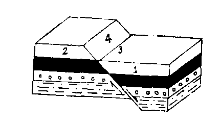 正断层 1.上盘 2. 下盘3. 断层线 4. 断层面