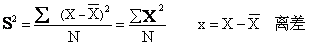 方差fang cha又称变异数。用S2或V表示。是差异量数之一,代表一组数据的差异情况或离散程度。由各数据与平均数之差即离差自乘之和再除以数据个数而求得。公式为: