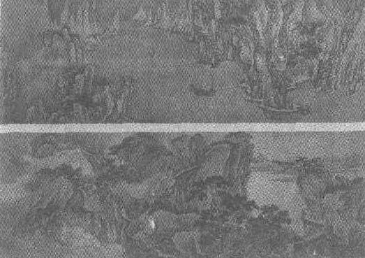 | 释义 | 方薰蜀江山水图二段卷清。方薰绘。第一段纸本设色。纵23.5厘米,横68.6厘米。第二段纸本墨笔。纵23.5,横69.2厘米。上海博物馆藏。方薰(公元1736—1799年),字兰士、懒儒,号兰坻、兰如,自称樗盦主、语儿乡农,石门(今浙江崇德)人。布衣,工山水,结构精微,风度闲逸,画笔秀挺,淹润如恽寿平。花草亦娟秀明净,绰有余韵,近陈道复,与奚冈齐名,人称“方奚”。晚年好作梅竹、松石,亦工诗文、篆刻,有《山静居稿》、《山静论画》二卷行世。幼聪慧,侍父游三吴,即以笔墨著称。此卷写蜀江山水二段。第一段以蜀江两岸的群山为主题,画卷起首是大山一角,奇石兀立,山顶几株松树虬盘而生,山坳之中林木茂密,村舍隐然。山腰栈道险峻,下临悬崖,上临绝壁,两骑联辔而行。栈道的另一头是连绵的群山,山势雄奇,栈道盘曲而上,古树溪水湍流而下,烟云浩渺,蜀江即隐现于二山之间。远处山峦平缓,构图用俯视的角度,前景几株杂树错落有致,山石用短笔披麻皴。第二段则以浩瀚的蜀江为主题,江面辽阔,水波平缓,浩浩江流穿过画幅中部后,渐渐隐向远方。沿江山岸积雪,山石耸立,采用俯视的构图,更显示江山的雄伟。江上三只轻舟扬帆驶来,江边渡船待航,坡地之上房舍院落临江而建。山上城墙、楼台、旗杆隐约可见,描画工细,以淡墨勾勒轮廓,少有皴擦。构图开合有致,精微严谨,俯视的画法更增加了蜀江群山的雄奇。两段均无署名,各于图左钤有<方>、<薰>的联珠印。